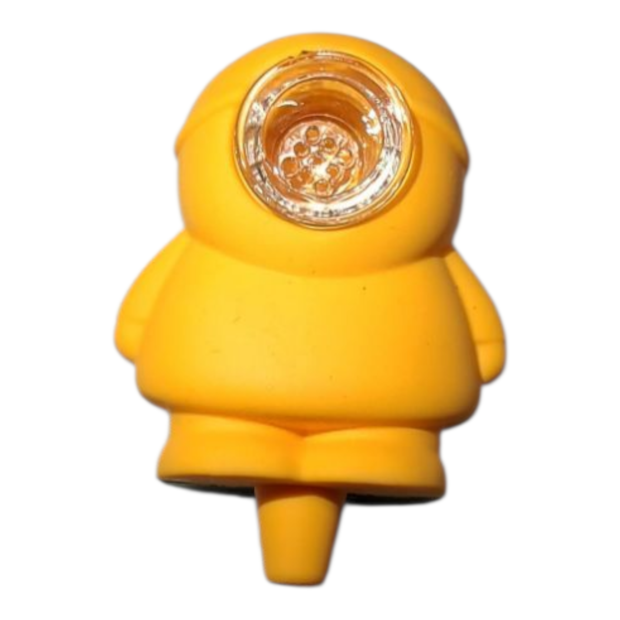 Silicone Cartman pipe with removable 9 hole glass bowl for easy cleaning.
