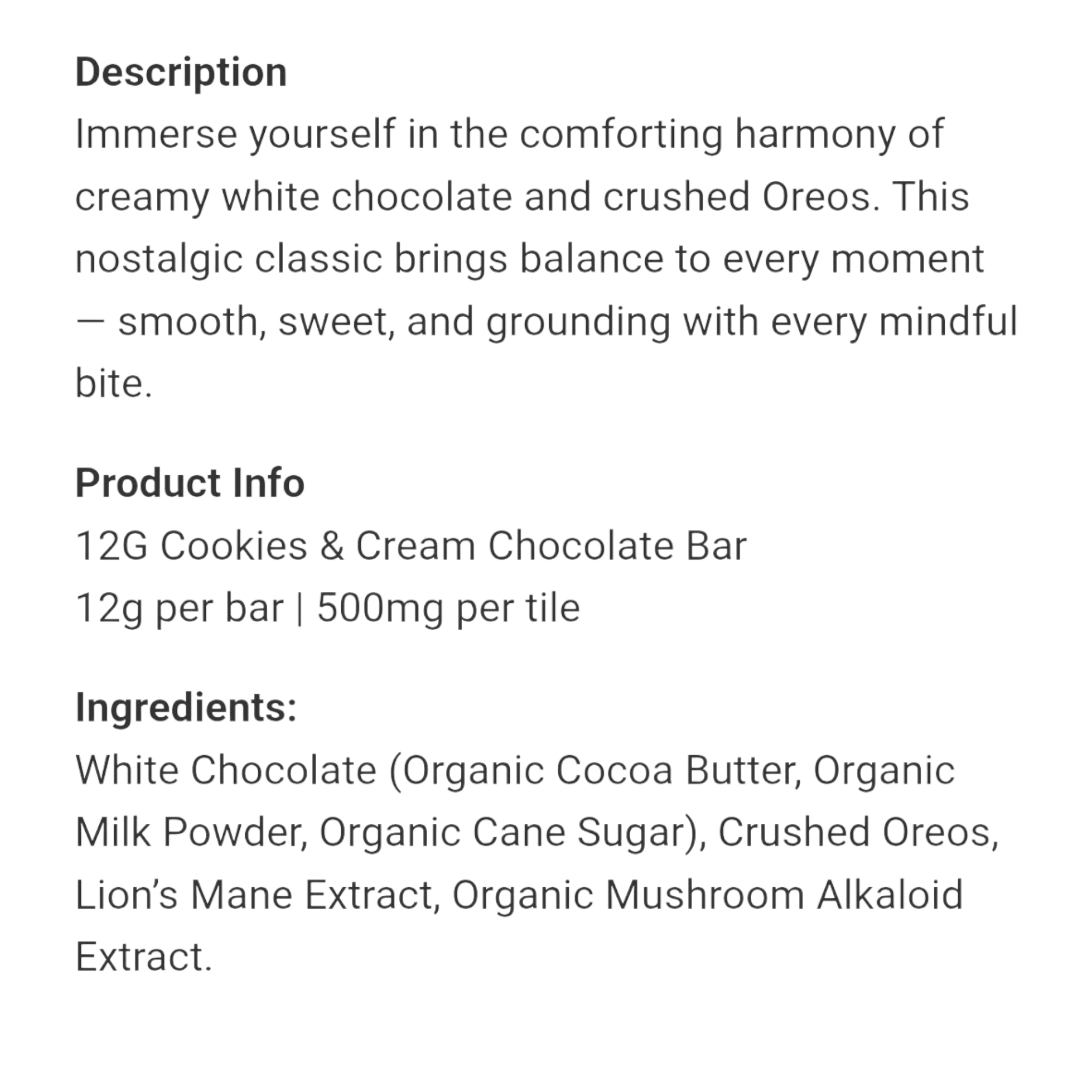Rize Megadose Magic Mushroom Cookies & Cream Chocolate Bar 12g